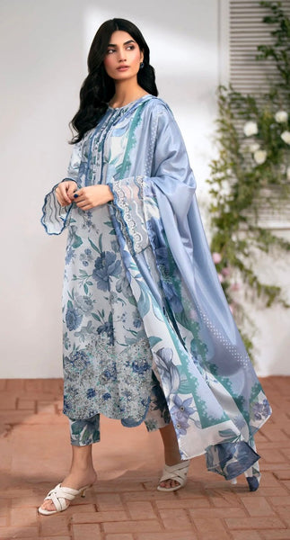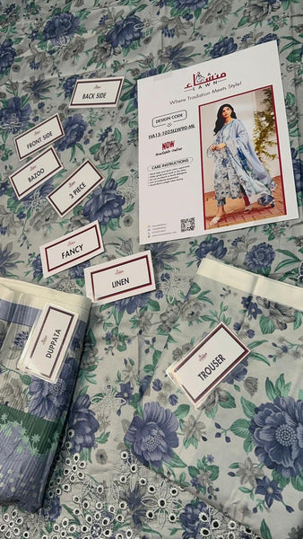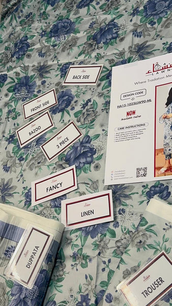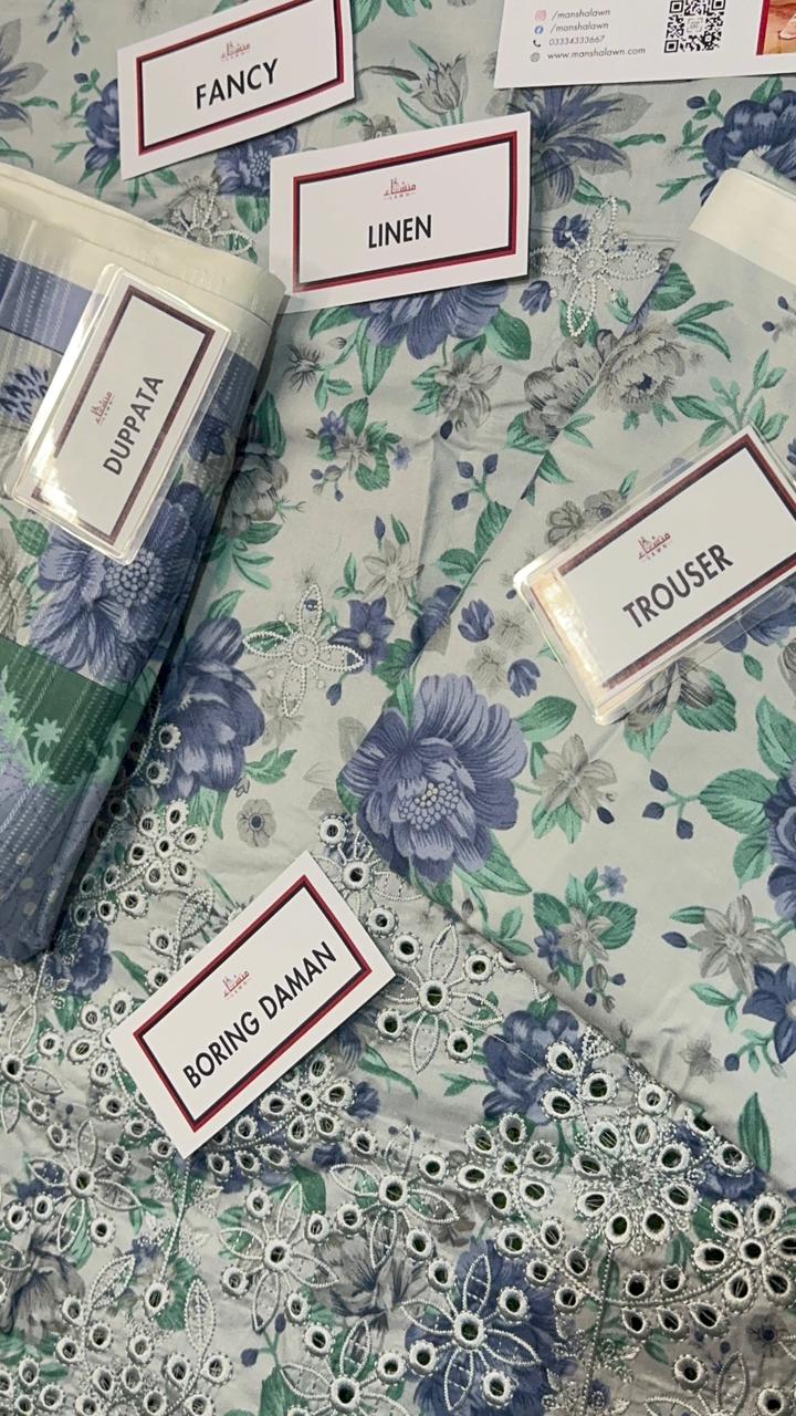 - Embroidered linen front with sequins and boring cutwork detailing on daman