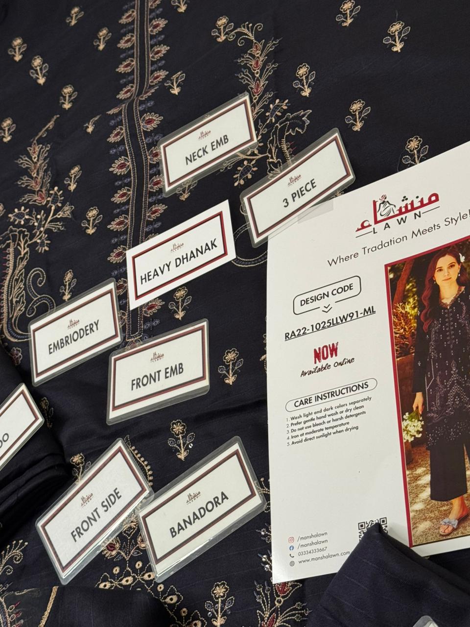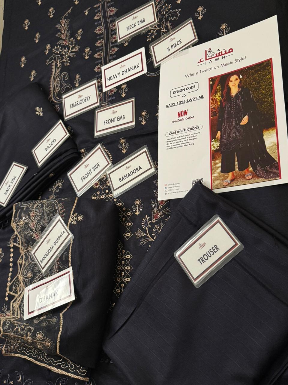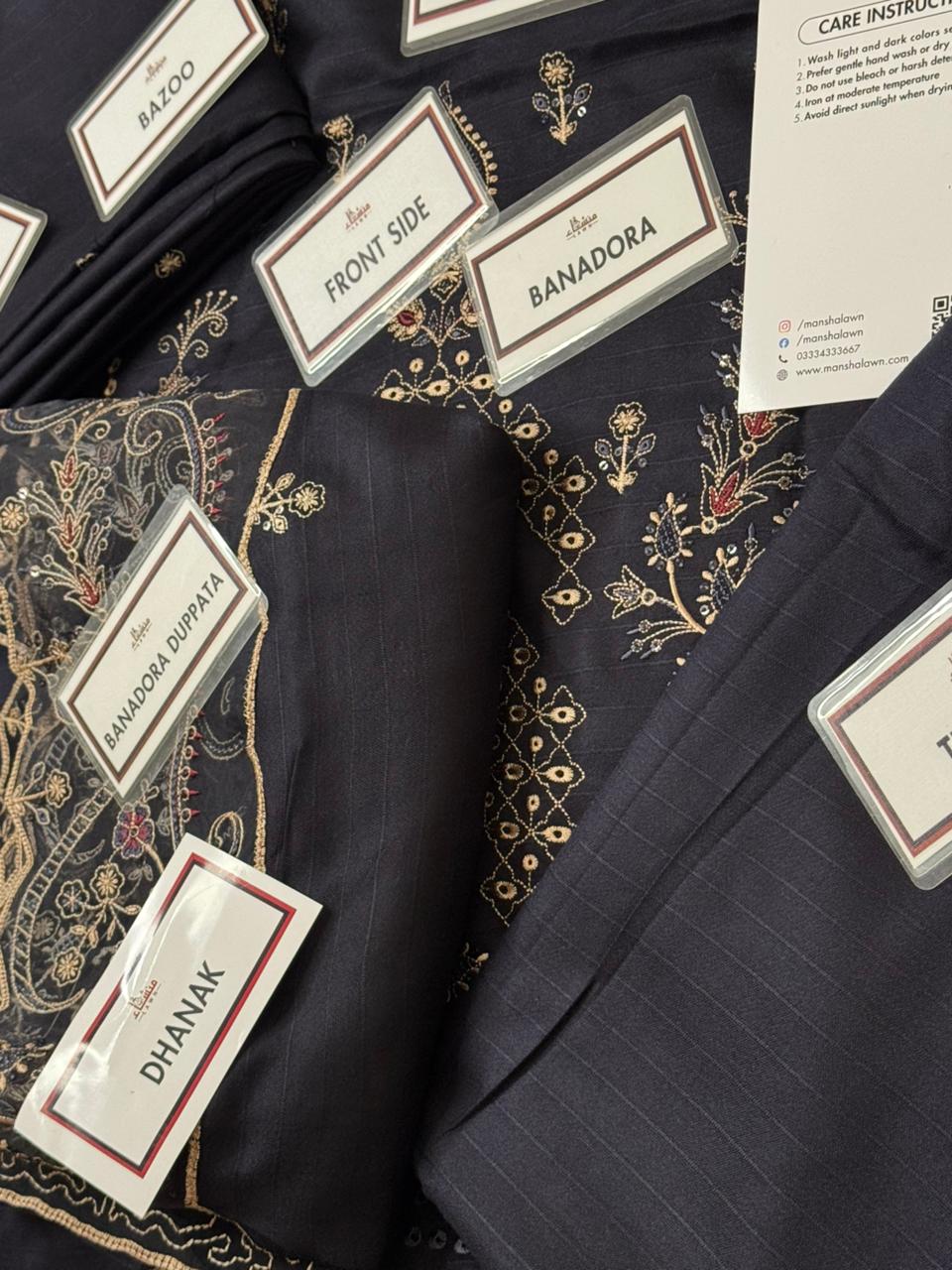 - Luxury Dhanak bana-dora embroidered shirt with detailed front design